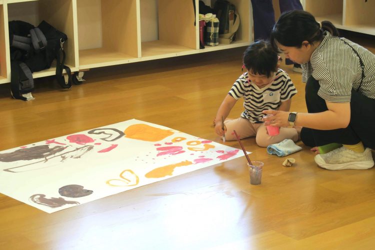 「“いっぱいジュース”は何がいっぱいなんだろう?」と山田先生が聞くと、「色がいっぱい!」と元気に答えてくれました。