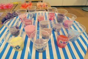 ぶどうジュースや、にじいろジュース。お気に入りの色にオリジナルのジュースの名前をつけてもらいました。