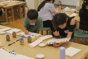 開催レポート1では「えのぐであそぼう」、「サンキャッチャーをつくろう」「油絵に挑戦!」の様子をお伝えします。