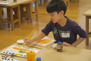 子どもたちは色の組み合わせや混ぜる色の量による変化をよく観察してコツをつかみ、自分の考えたとおりの色をつくることができました。