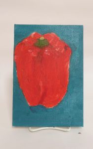背景の色も重要です。この作品は青みの強い背景がパプリカの赤を際立たせています!