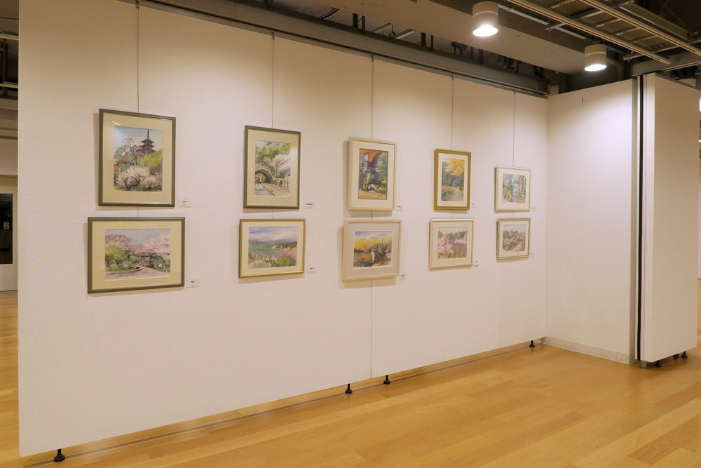 国内外の現場で描いた風景スケッチ(水彩)約250点を展示