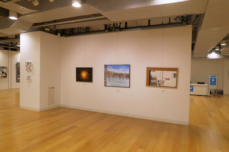 水彩、アクリル等による具象、抽象作品と6号前後の小品展示