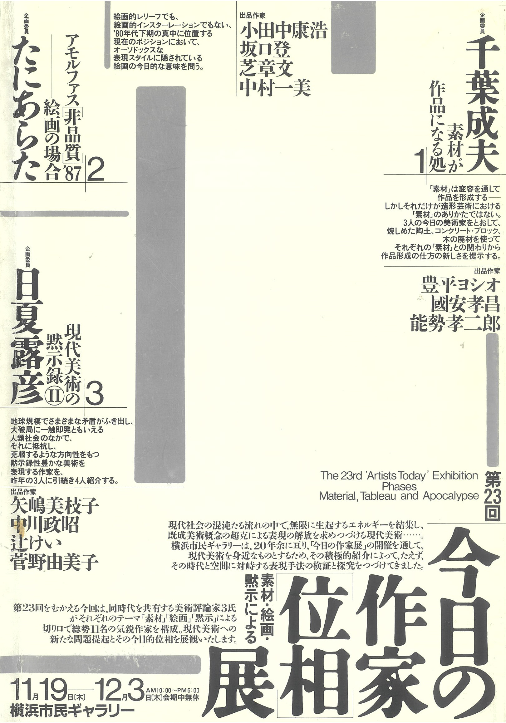 第23回今日の作家「位相」展 -素材・絵画・黙示による- The 23rd 'Artists Today' Exhibition: Phases; Material, Tableau and Apocalypse