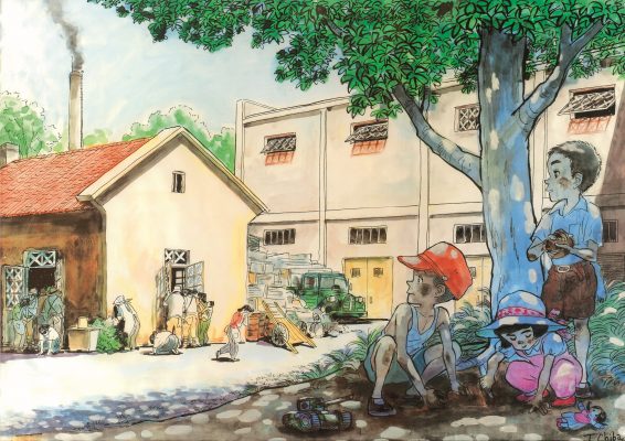 終戦後の横浜で幼少期を過ごした漫画家ヒサクニヒコが、街の移り変わりを活き活きと描いた『濱手帖13 横浜の記憶』の原画を展示します。